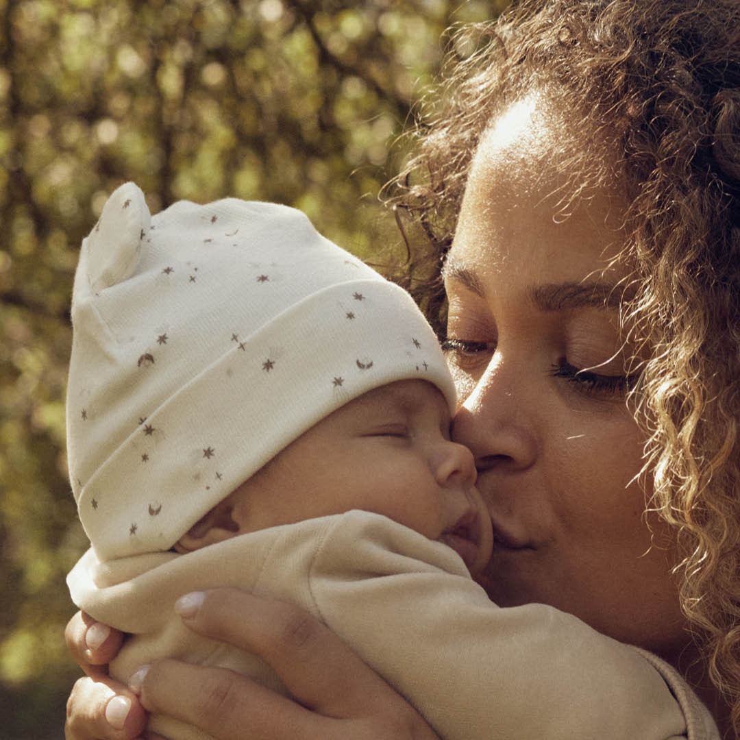 Denne hue er fremstillet fra str. 44-74 og passer derfor til meget små babyer.