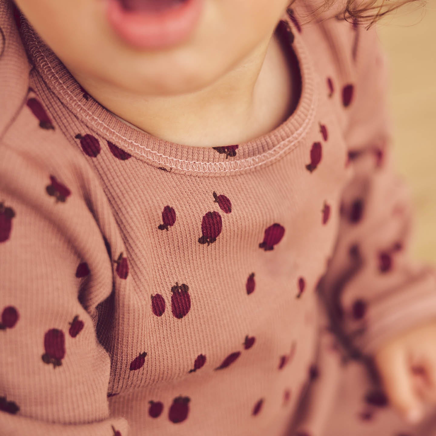Vi anbefaler at vaske produktet med vrangen ud for at beskytte prints og farver bedst muligt