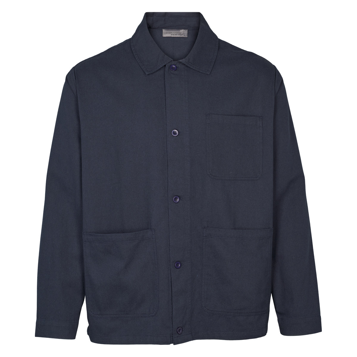 Der er en lomme på brystet og lommer i bunden, jakken lukkes med knapper.