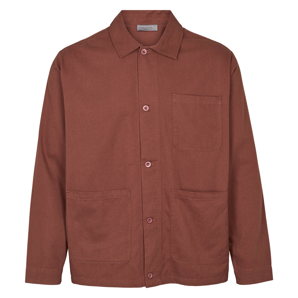 Der er en lomme på brystet og lommer i bunden, jakken lukkes med knapper.