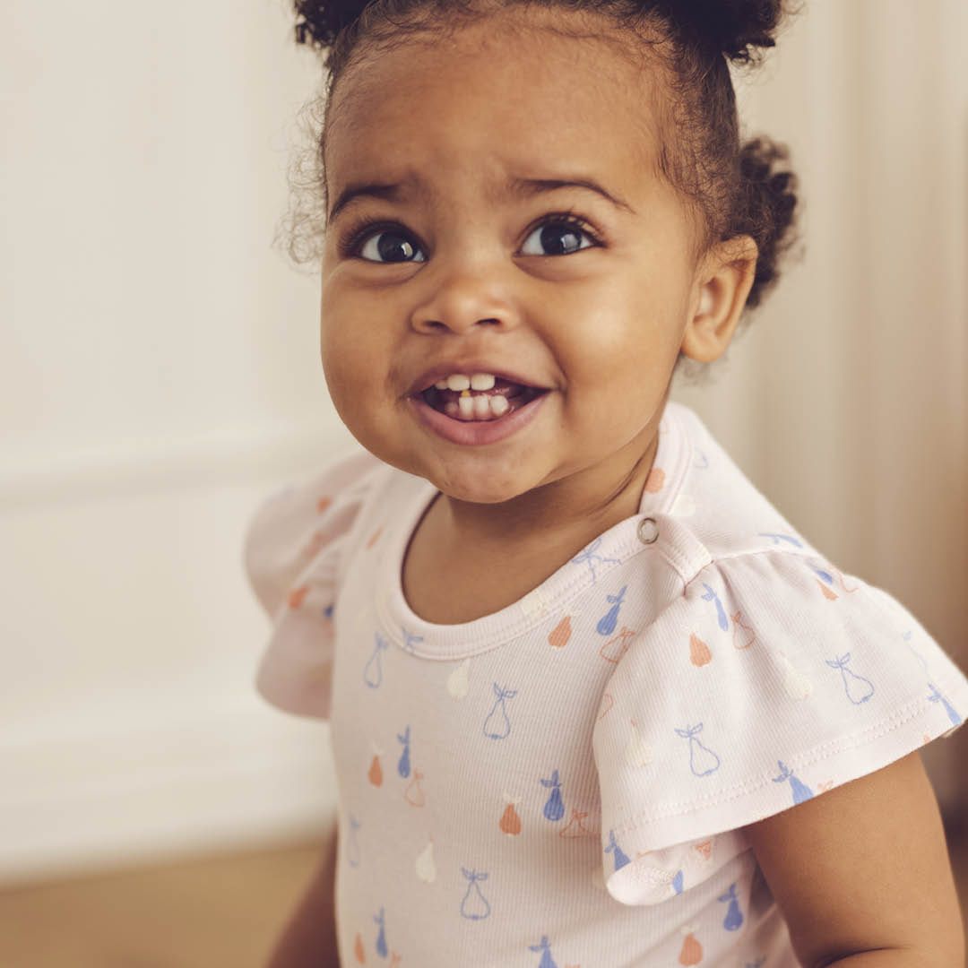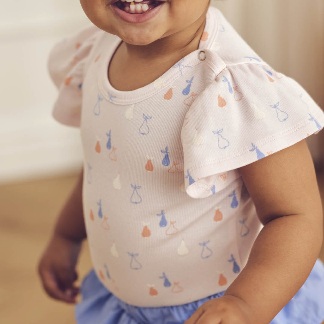Bodyen har et sødt gennemgående print af farverige pærer.