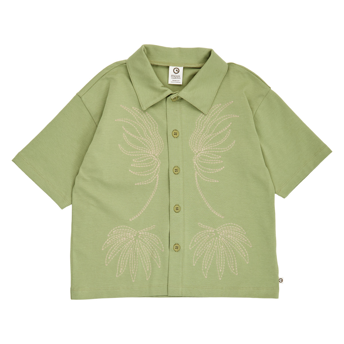 Skjorten er klassisk udformet med krave og knap lukning fortil.