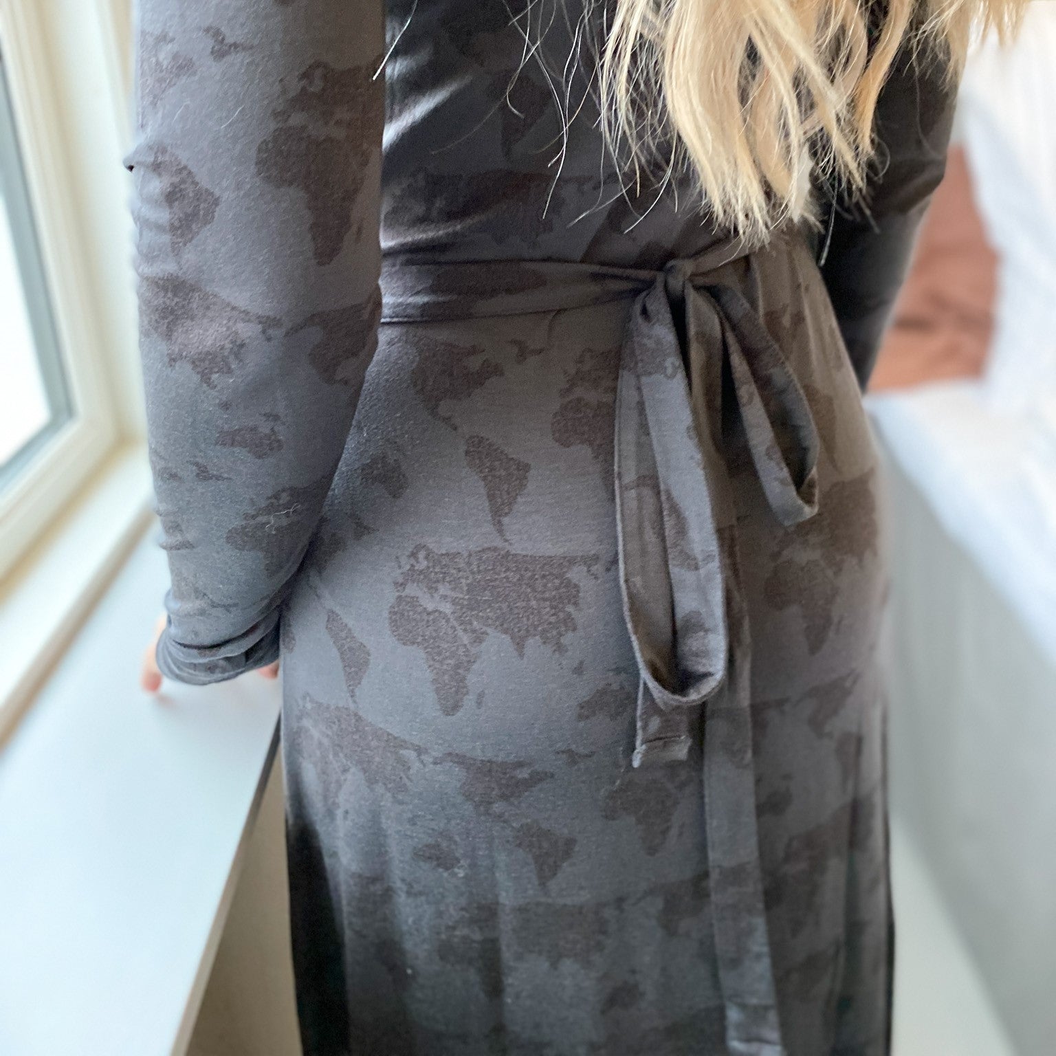 Kjolen er med slå om på fronten, og egner sig derfor godt til amning.