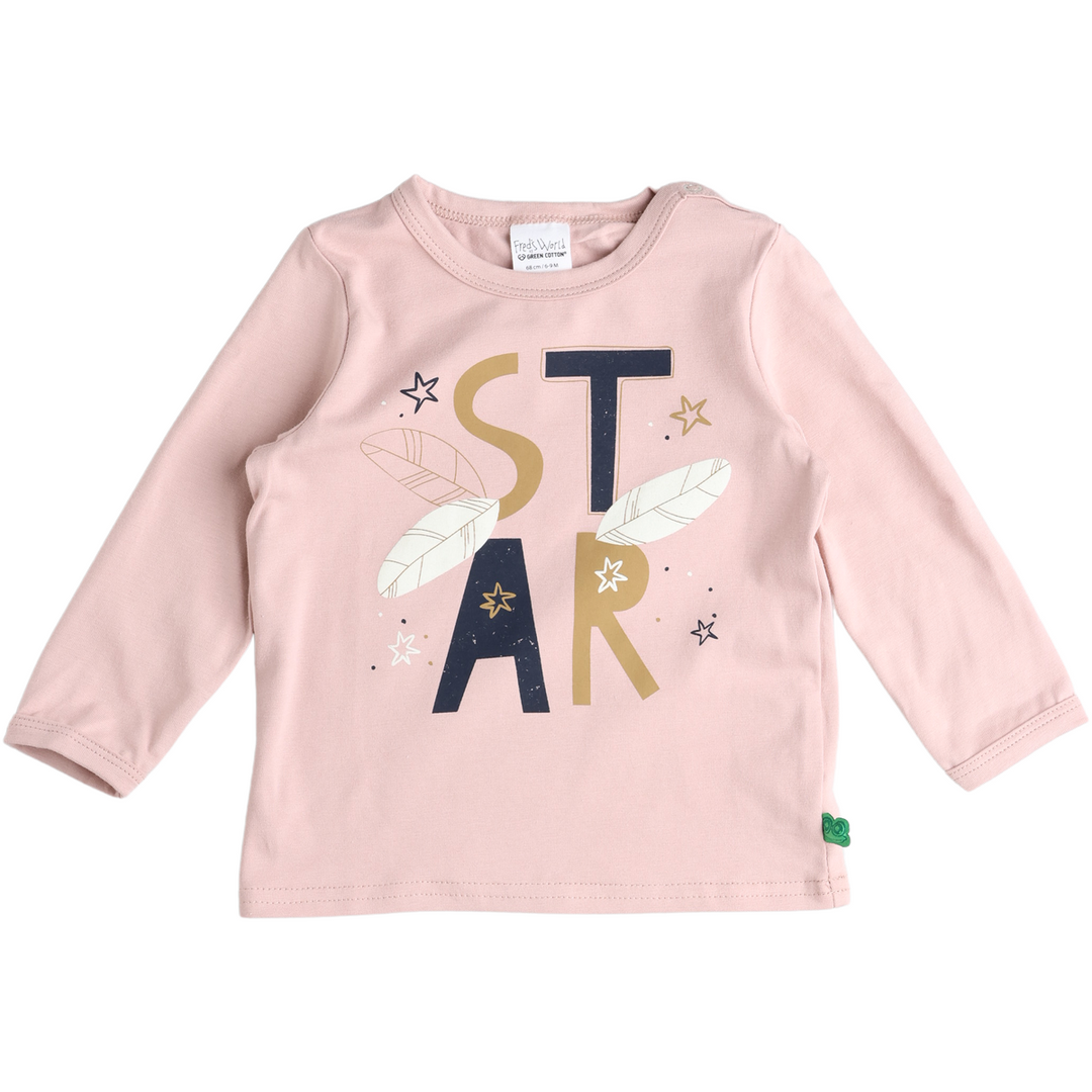 RE-LOVED STAR bluse med fjer print og tekst