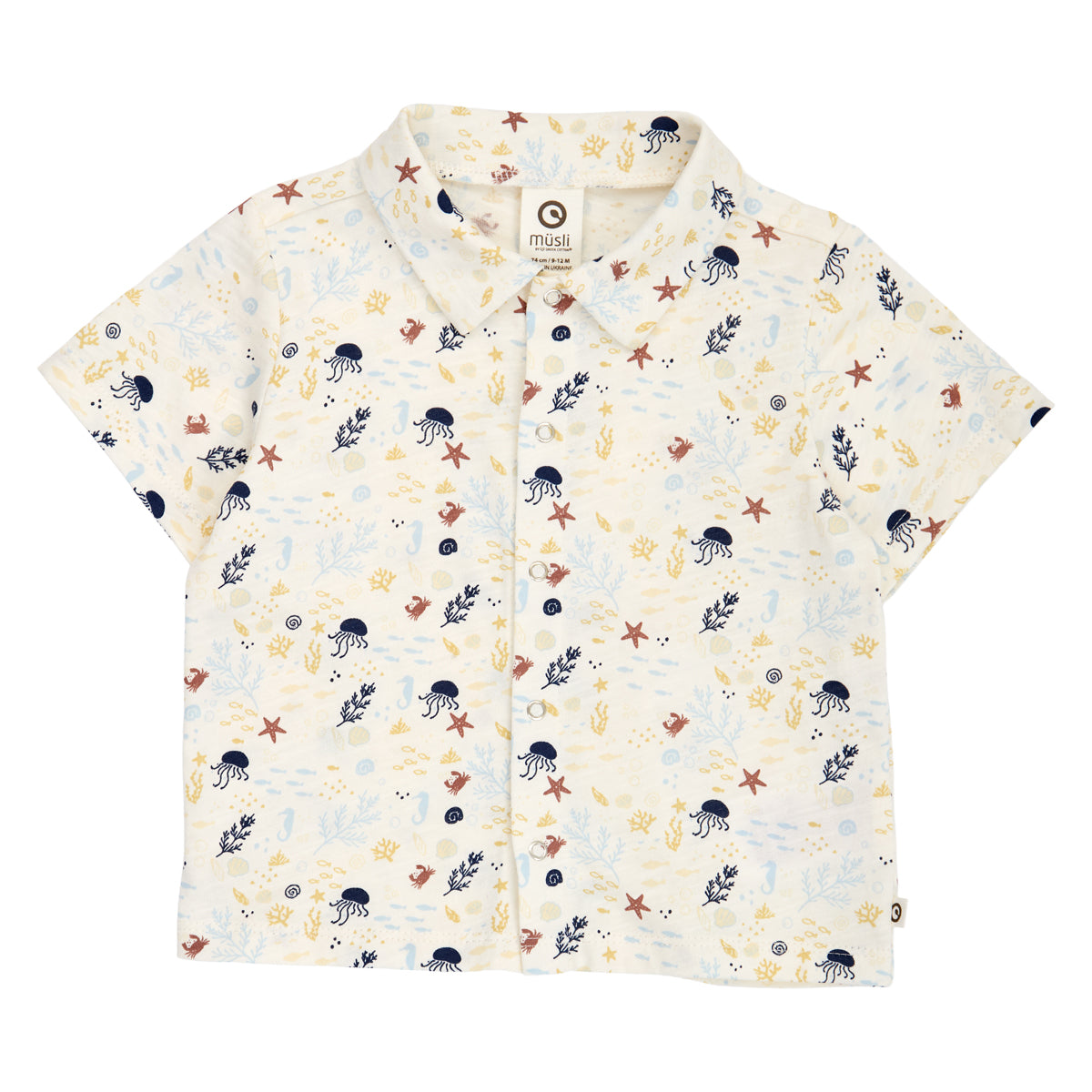 Skøn sommerskjorte med korte ærmer og med et fint gennemgående print af havets dyr og planter.