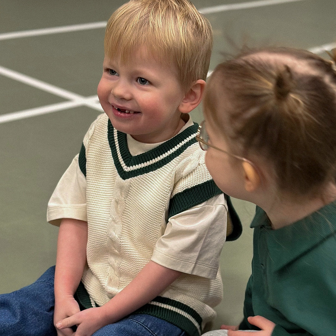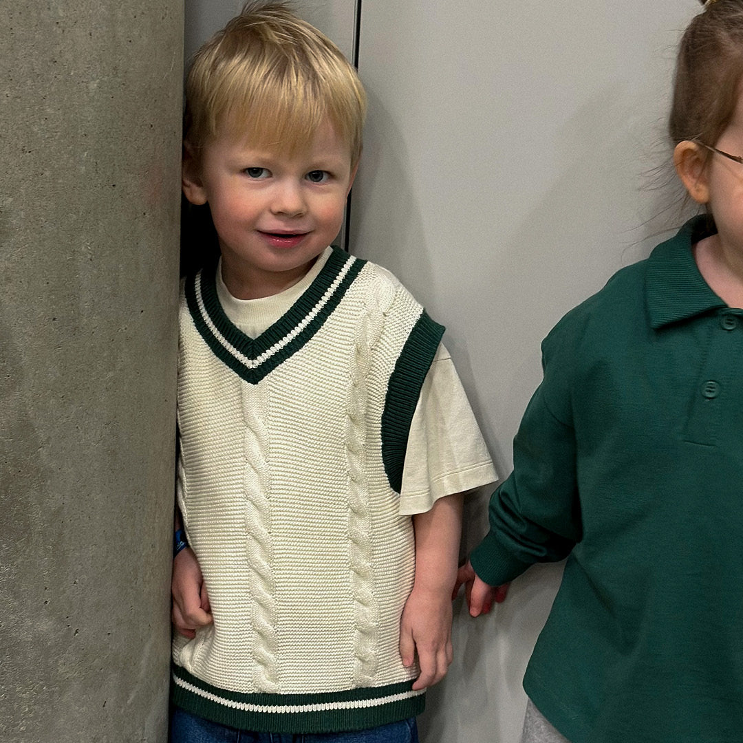 Vesten er strikket i blød og økologisk strik i 100% bomuld.