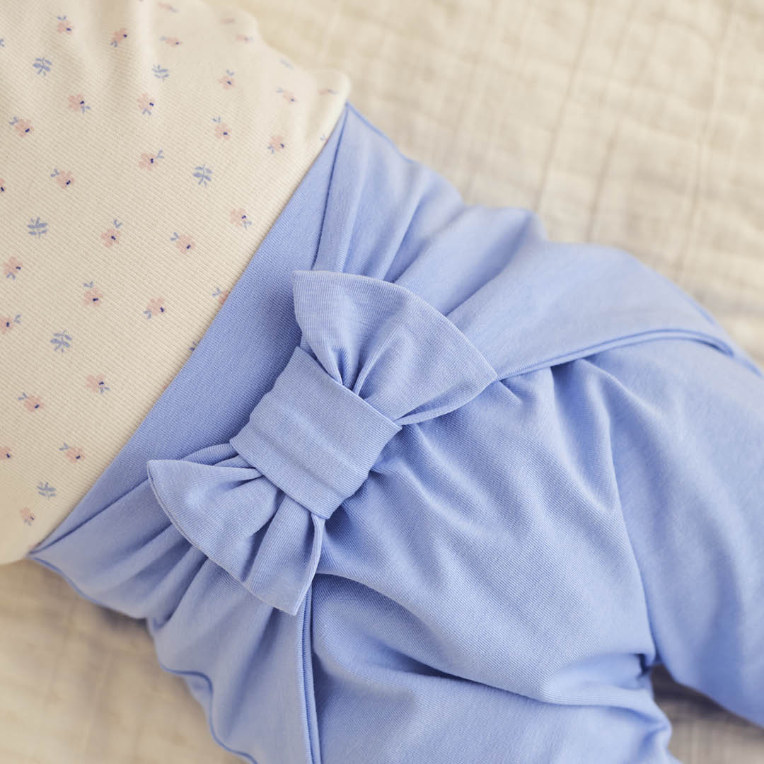 Bukserne har den sødeste lille sløjfe på fronten i taljen.