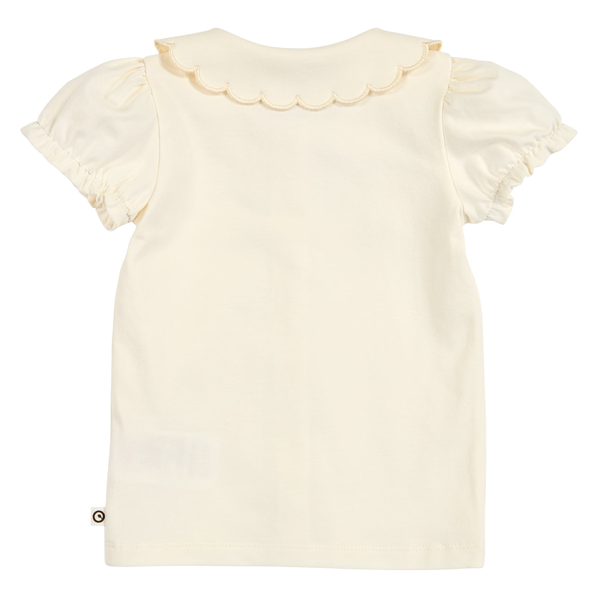 Super sød skjortebluse med en dekorativ krave og med små søde pufærmer.