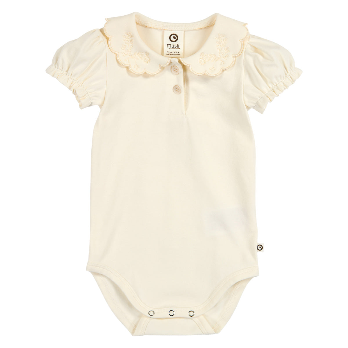 Super sød skjortebody med en dekorativ krave og med små søde pufærmer.