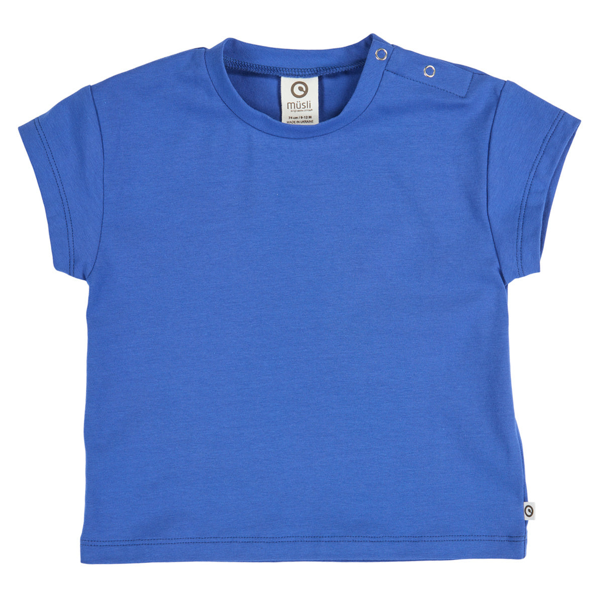 Blød kortærmet T-shirt med trykknapper ved halsen.