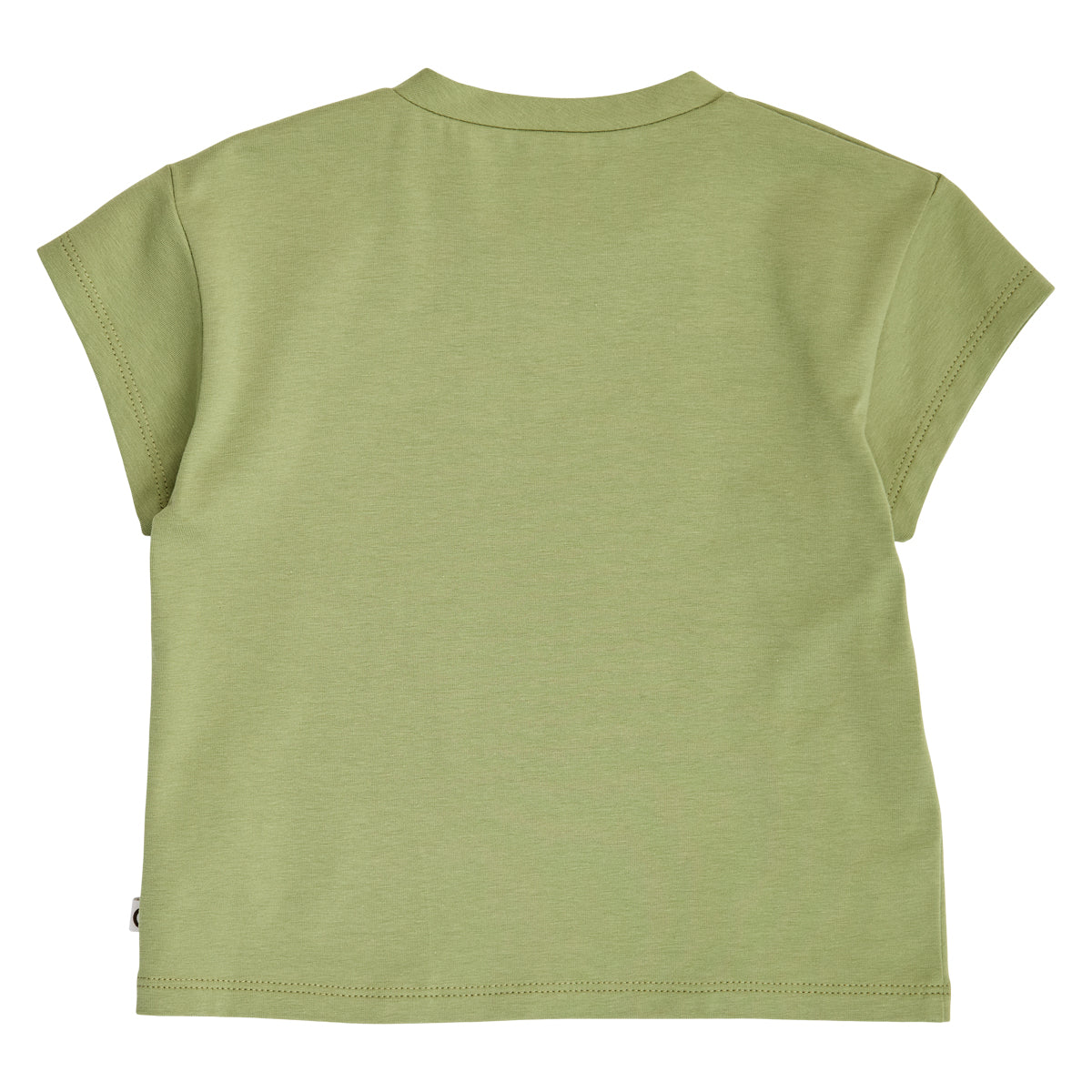 Blød kortærmet T-shirt med trykknapper ved halsen.