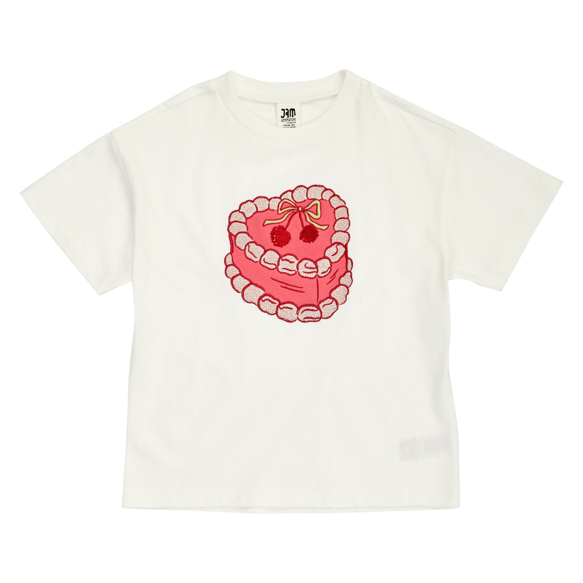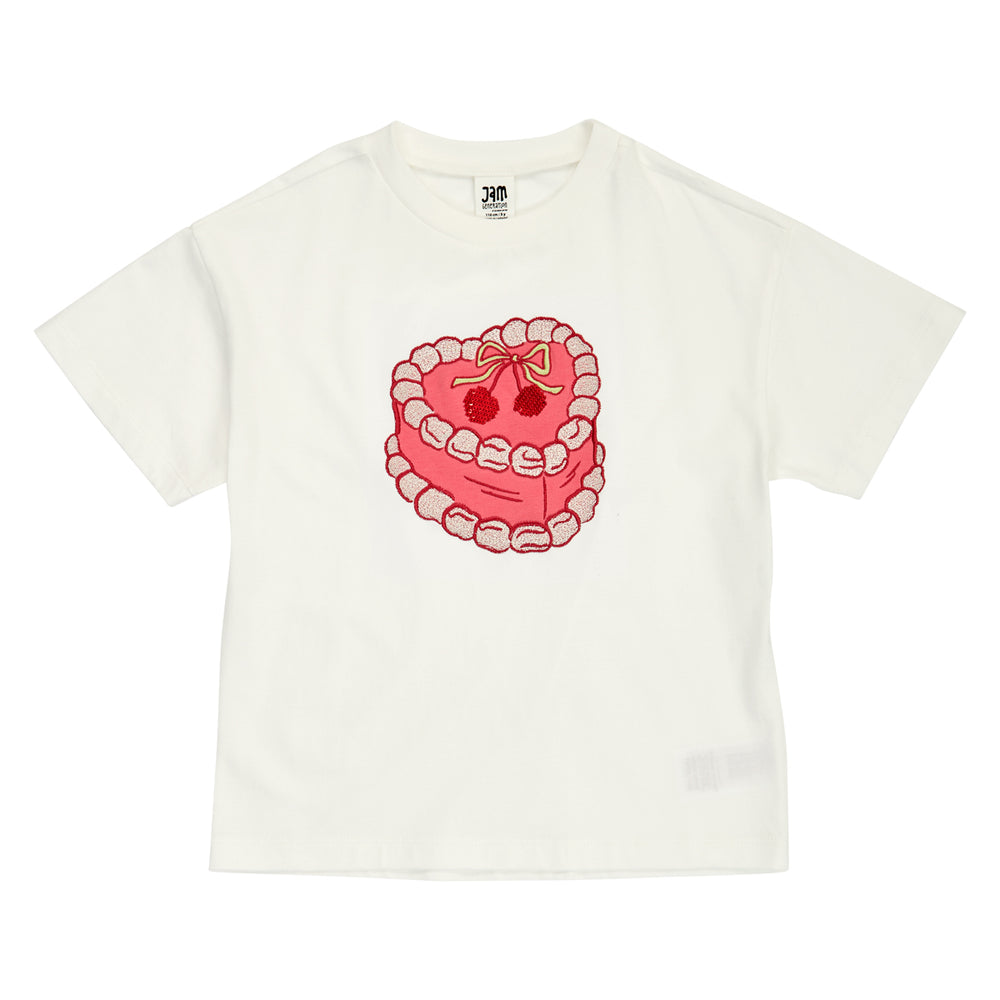 Smart og frisk T-shirt med print på fronten af en hjerte kage.