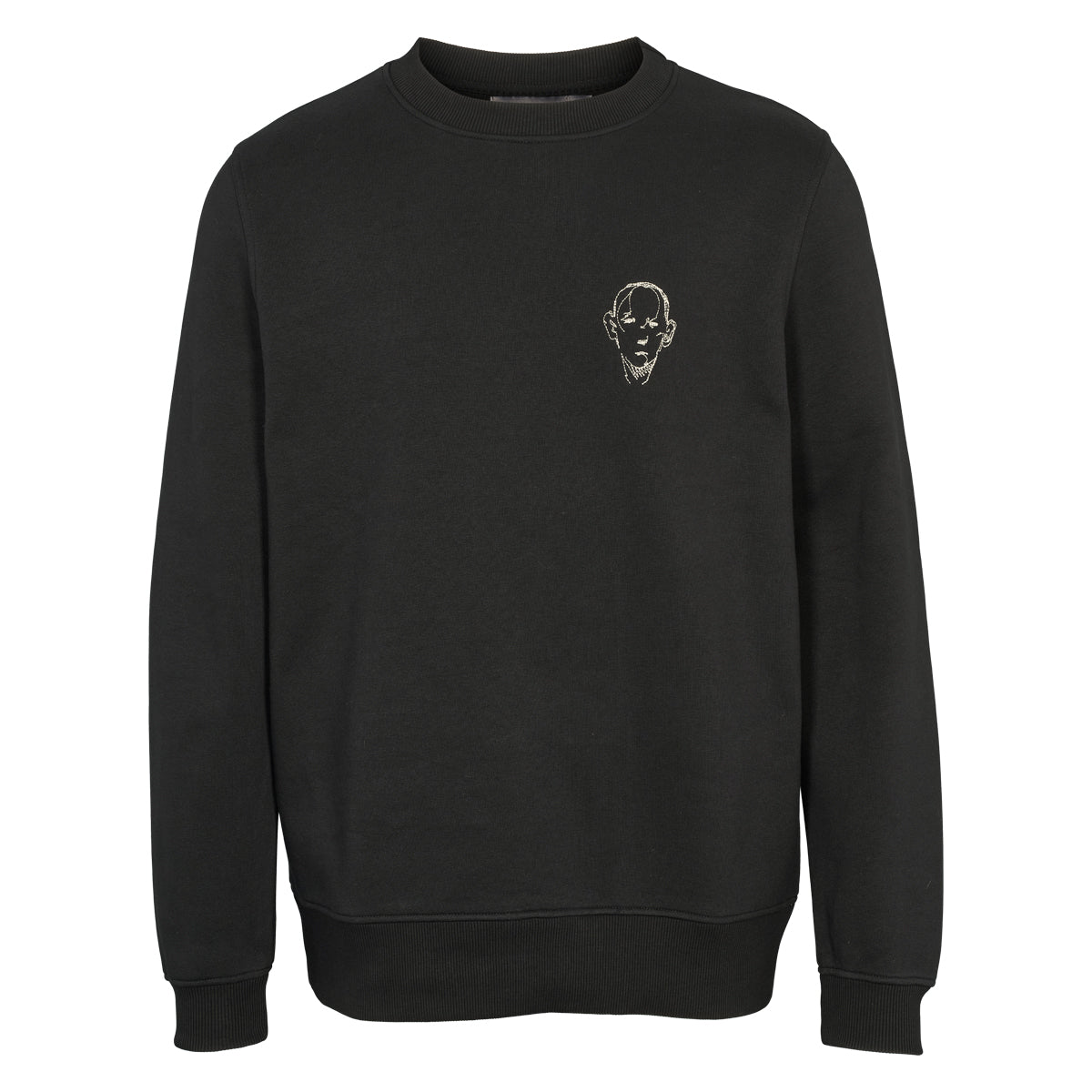 Super fed og unik sweat trøje med et broderi på brystet og et stort print på ryggen.