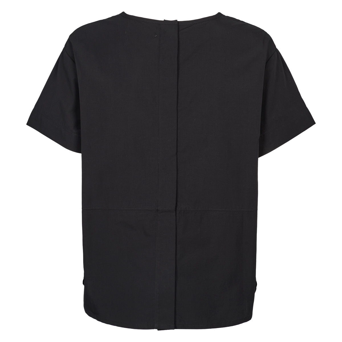 Skjorteblusen er bred og kort, og oversize i pasformen.