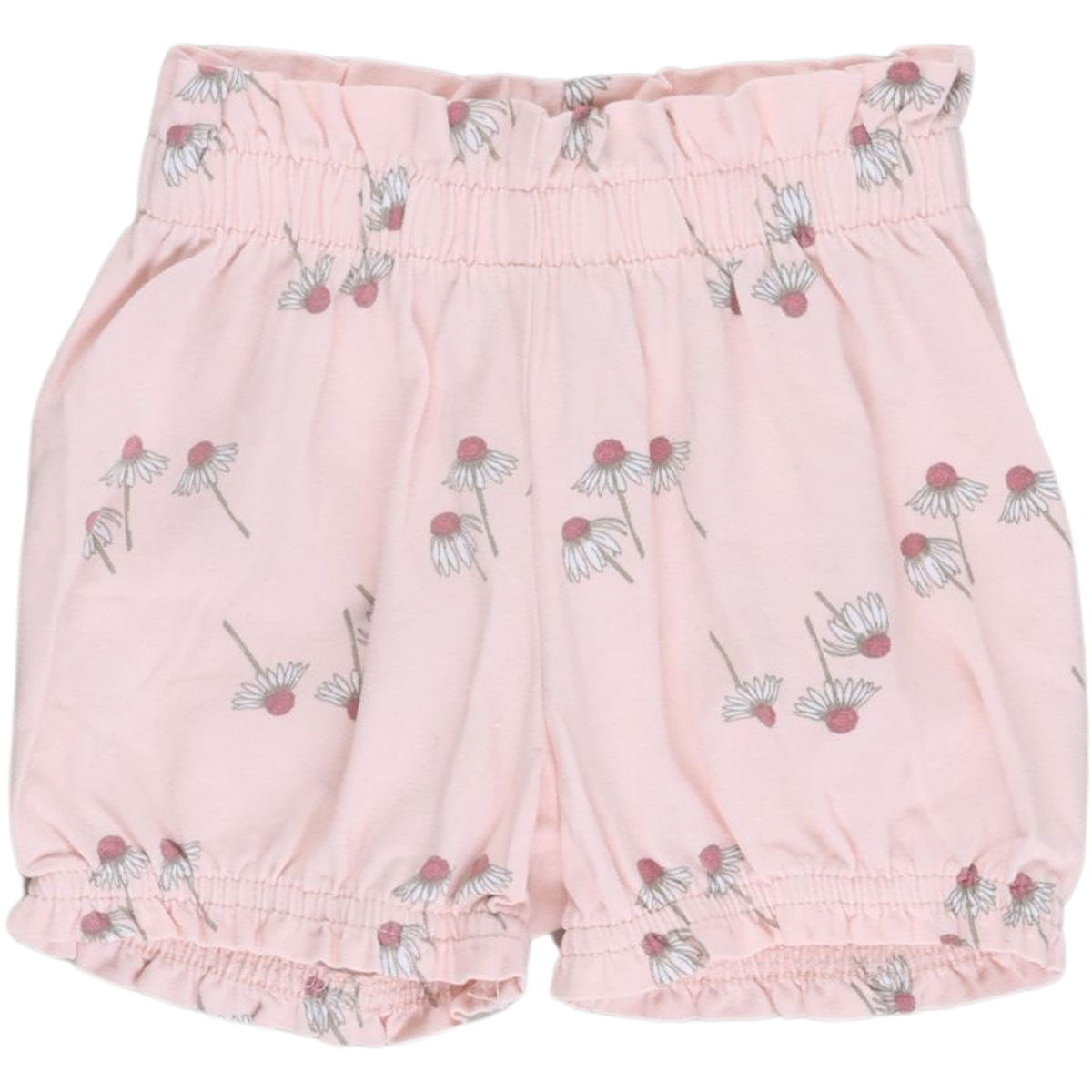 Søde bloomers til de mindste med et fint gennemgående print af kamille blomster på lyserød baggrund.