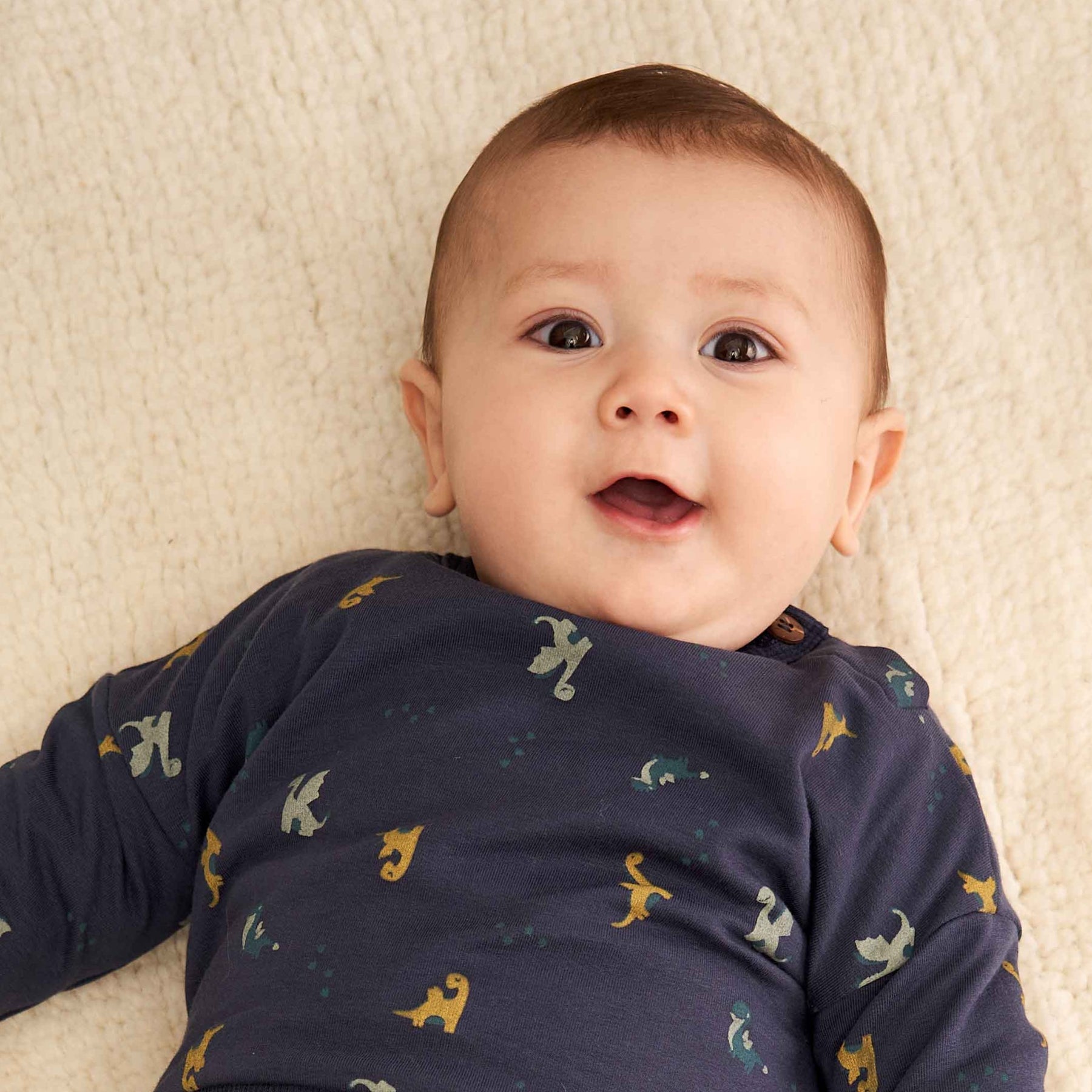 Sej body med smart gennemgående print af drager. Bodyen er fremstillet i en dejlig blød og strækbar kvalitet for at opnå højere komfort og længere holdbarhed. Kvaliteten er en tynd sweat kvalitet som er børstet på indersiden som giver en dejlig lun og blød følelse. Bodyen har tryklåslukning ved halsen og i bunden.Sej body med smart gennemgående print af drager.
