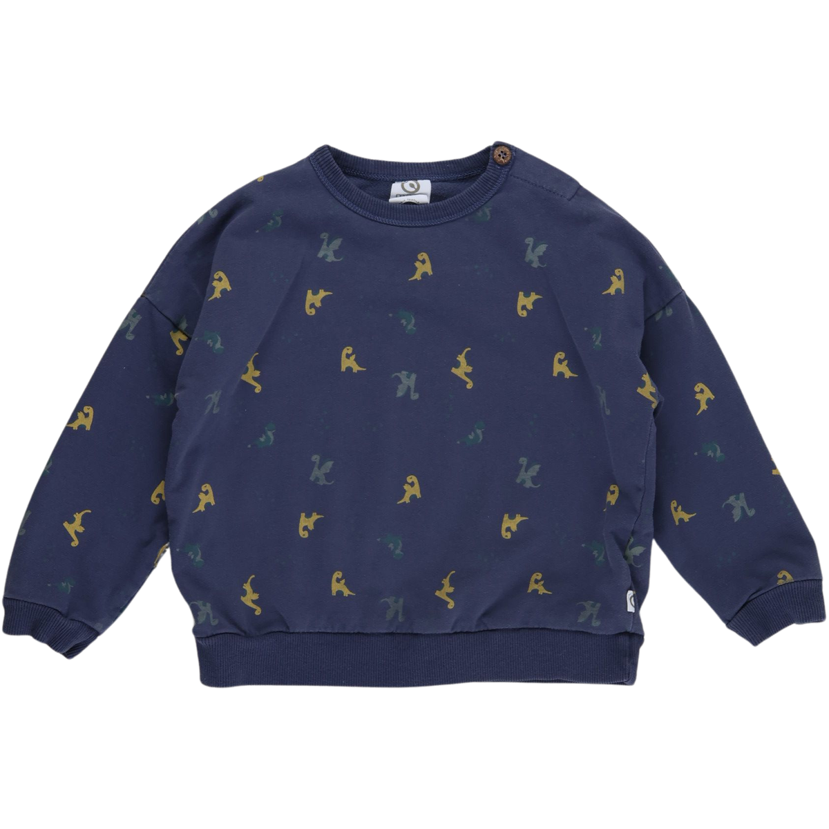 Super sød sweat-trøje til de mindste. Fint gennemgående print af drager. Dejlig blød bomuldskvalitet med børstet inderside som gør trøjen dejlig lun og behagelig at have på. Åbnes i halsåbningen med en knap lavet af kokosnødSuper sød sweat-trøje til de mindste.