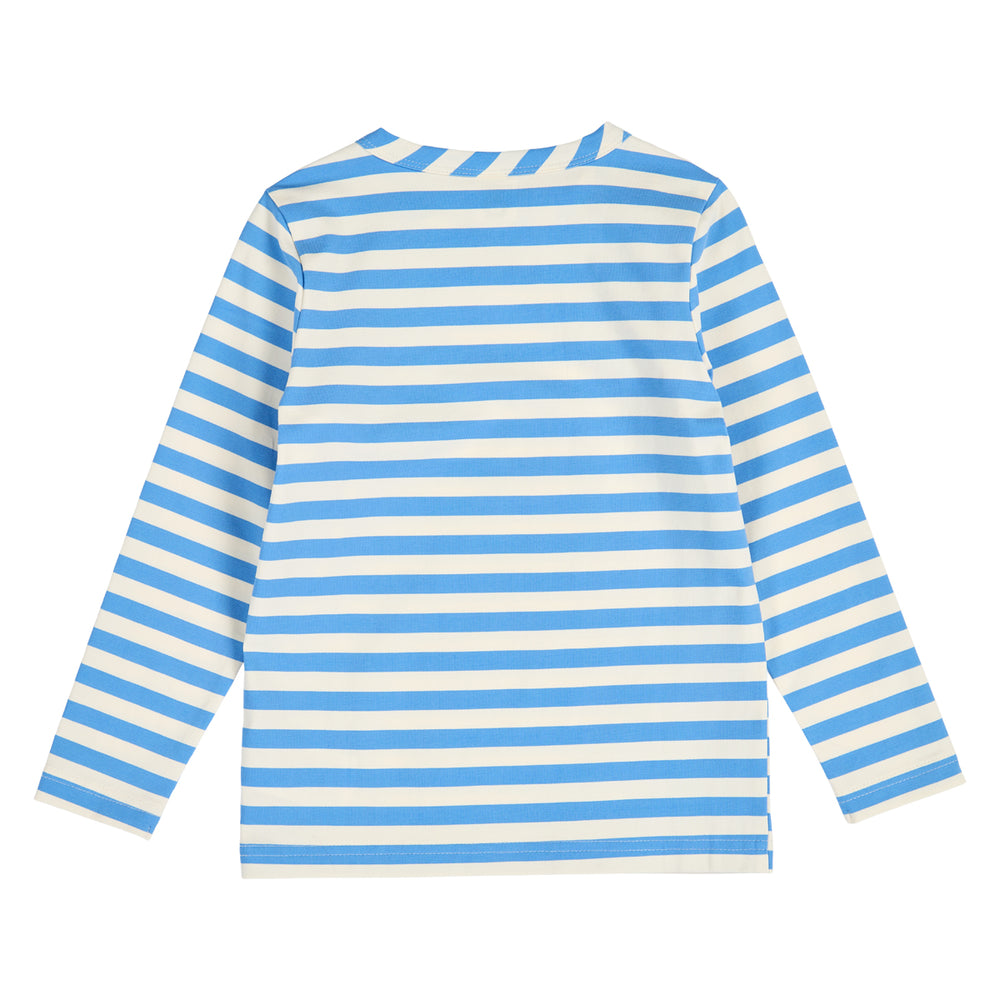 Sød bluse med lange ærmer og med tværgående hvide og blå striber.