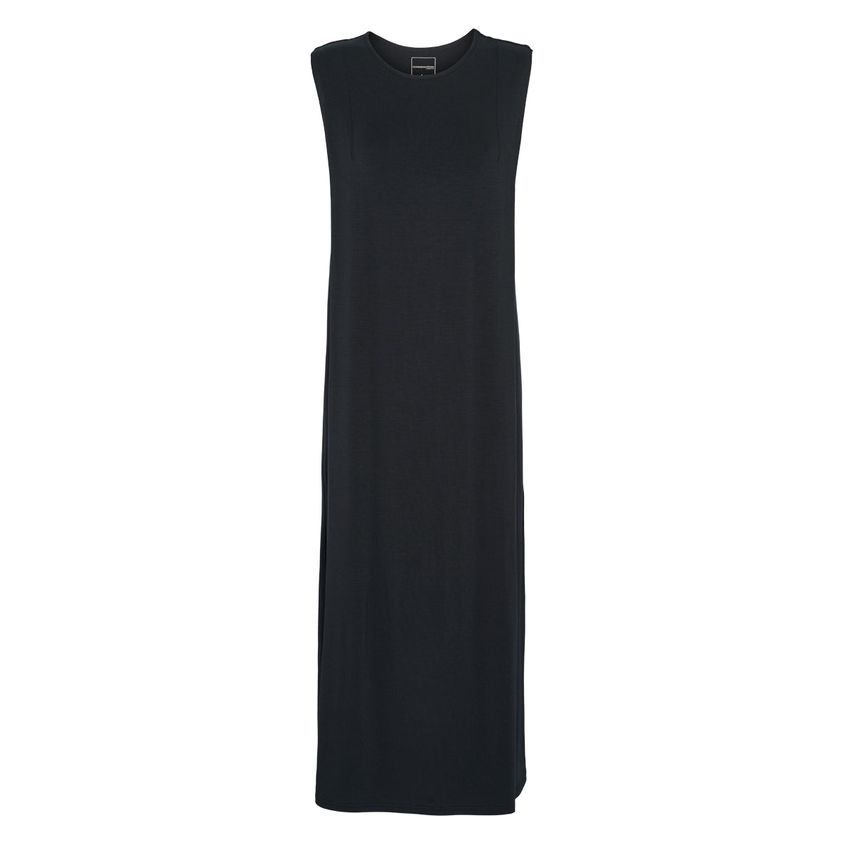 Kjolen er sort og lang uden ærmer.
