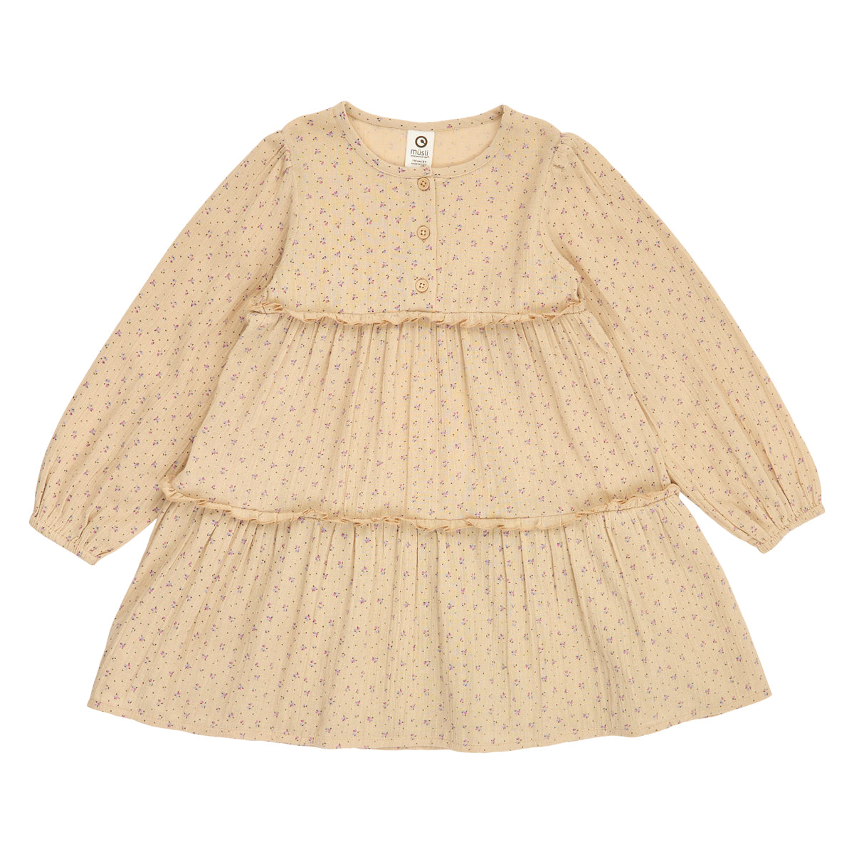 Sød og fin kjole med lange ærmer og med fine lag.