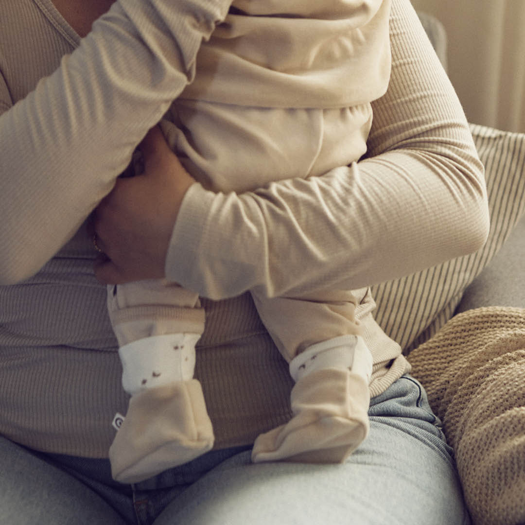 Dejlig bløde bukser i lækker og lun velour. Bukserne har en foldbar kant i bunden så man kan lukke fødderne ind så de ikke bliver kolde.